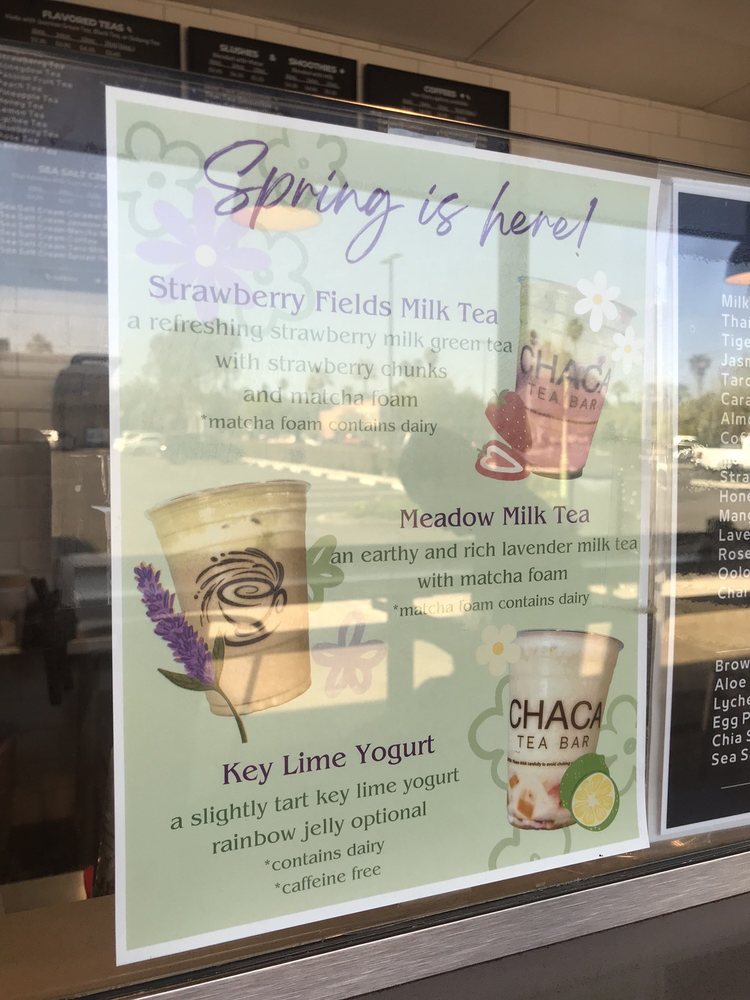 Chaca Tea Bar is a vibrant bubble tea and smoothie spot located in Redlands, CA. The menu boasts a variety of options, from traditional milk teas to innovative flavors like mango and lychee. Customers rave about the high-quality ingredients and friendly service, with special mentions for the sea salt cream and strawberry yogurt drinks. The staff, mostly young and enthusiastic, ensure a pleasant dining experience. The Monday specials are a hit, offering $1 drinks that keep customers coming back for more. With vegan options, non-dairy substitutes, and fresh toppings like lychee jelly and aloe vera, Chaca Tea Bar caters to a diverse crowd. Don't miss out on the refreshing beverages and welcoming atmosphere at this hidden gem in Redlands.